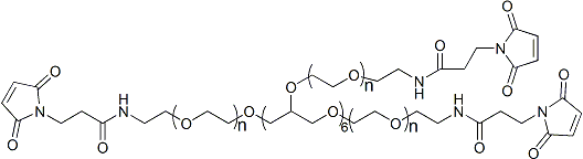 8-ArmPEG-Mal(八臂聚乙二醇馬來酰亞胺)是一種多臂PEG衍生物,其連接到一個六甘油核心的八個臂的各個末端具有馬來酰亞胺基團。